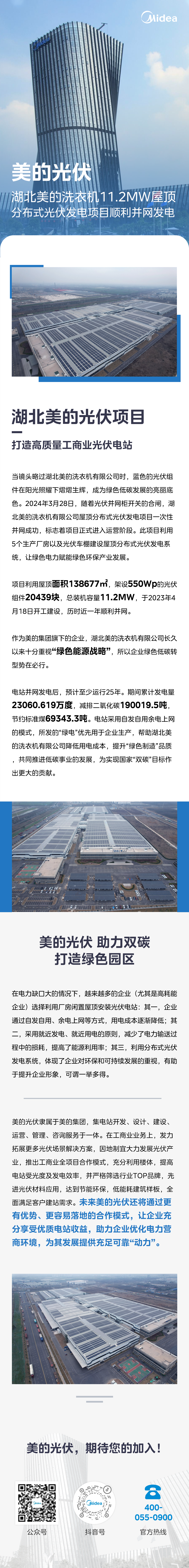 美的光伏 | 湖北美的洗衣机11.2MW屋顶分布式光伏发电项目顺利并网发电